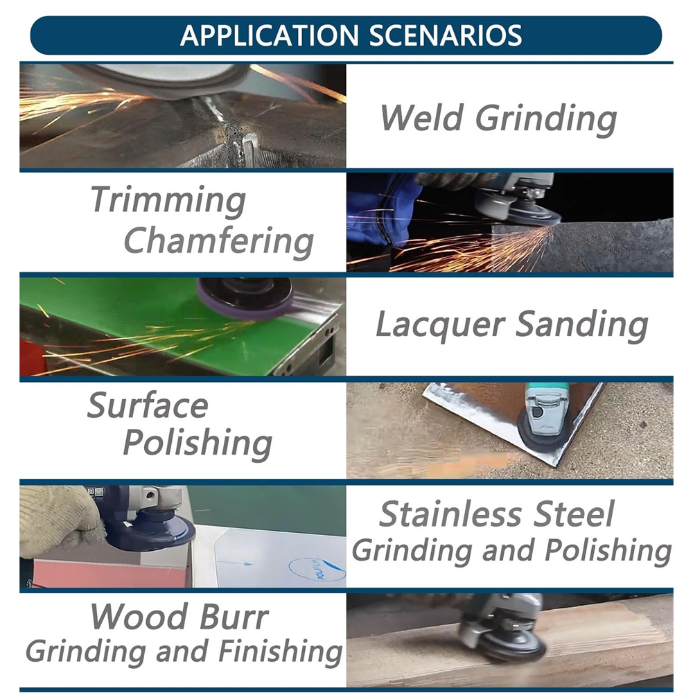- Flexible Grinding, Conforming to Curved Surfaces and Edges: The flexible abrasive blades automatically deform to conform to the workpiece surface, perfectly conforming to complex areas such as curved surfaces, corners, and welds. This ensures even grinding without blind spots, avoiding the risks of "grinding flat" or "grinding through," making it a highly efficient tool that traditional grinding wheels cannot replace.
