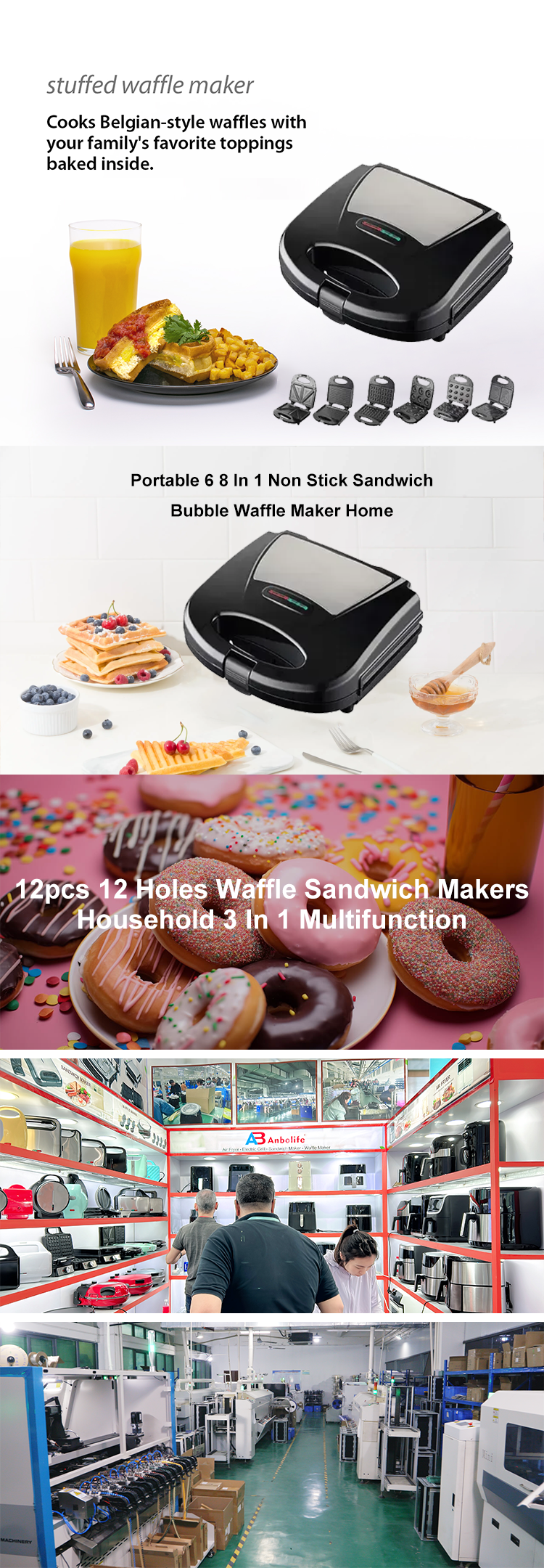 | Product Name | Portable 6 8 In 1 Non Stick Sandwich Bubble Waffle Maker |