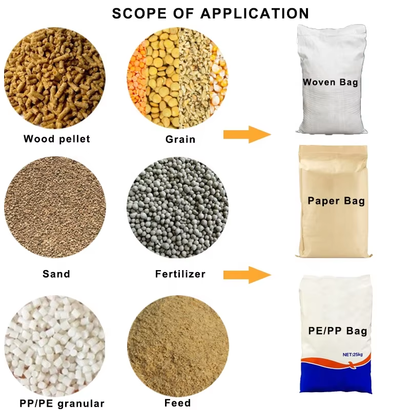 * Granules and pellets like pet food, animal feed, rice, cereal grains, and fertilizers.