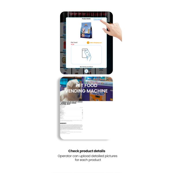 This vending machine can be used for products such as pet treats and dog collars. The machine's customization feature allows it to cater to your specific needs, making it a versatile solution for various occasions and scenarios. Whether you're in a hospital, veterinary clinic, or pet store, it can provide a convenient way to store and dispense products.
