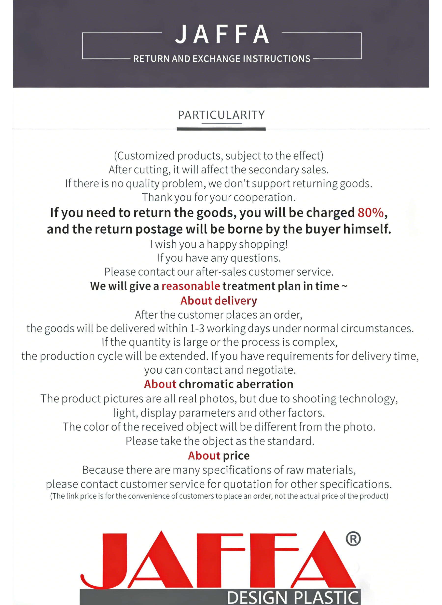 | Lead Time | Sampling: 5-7 days (including modification time); Bulk production: 10-20 days (adjusted according to order quantity, delivery within 15 days for less than 500 pieces); Rush order: Negotiable, fastest delivery in 7 days (rush fee required) | Real-time production progress feedback available for bulk orders |