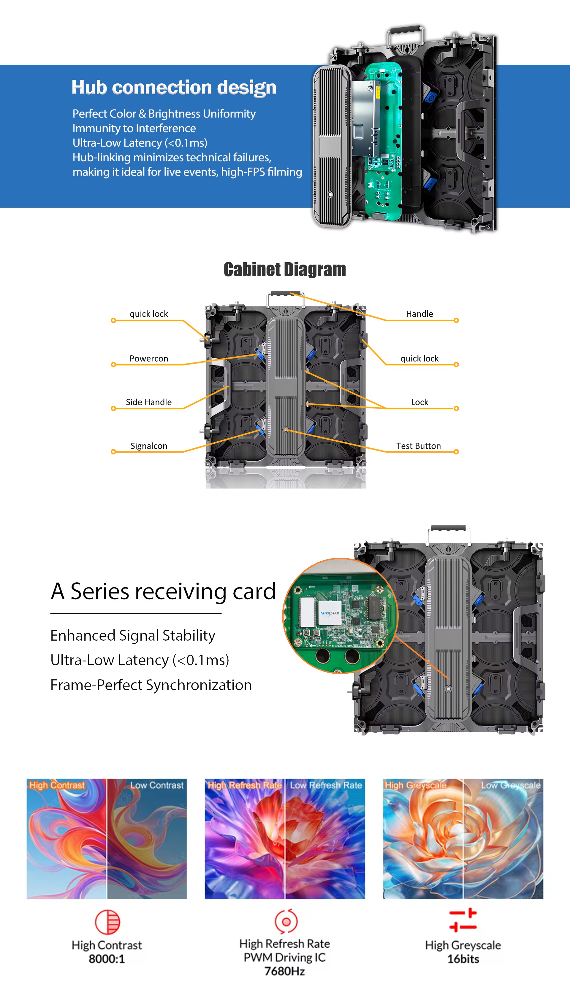Featuring a custom-designed die-cast aluminum cabinet, this product offers exceptional lightness, a slim profile, and rapid installation as its core advantages. The lightweight and thin cabinet design allows for quick setup, dismantling, and transportation, making it equally suitable for large-scale rental events and permanent fixed installations.