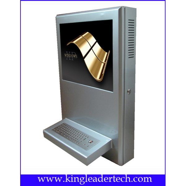 Modern Slim Wall Mount Kiosk With 15 Inch Touch Screen Monitor And Metal Keyboard Optional