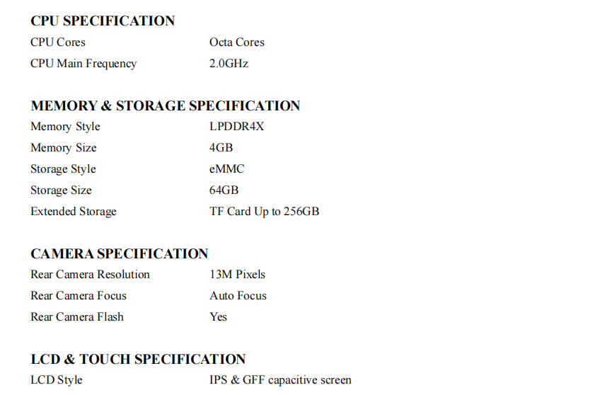 Mobydata V2S PDA TECHNICAL SPECIFICATION