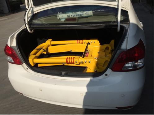 The mini crash-avoidance device weighs 13.4kg. The product has a foldable design. The folded size is only L1100*W664*H200. You can fold it up in the trunk of your car when not in use. Easy to carry. Three rubber panels are installed at the bottom of the mini collision avoidance device, which increases friction with the ground when impacted, forcing the car to stop. The device also has two shock absorbing springs that can withstand a certain amount of impact.